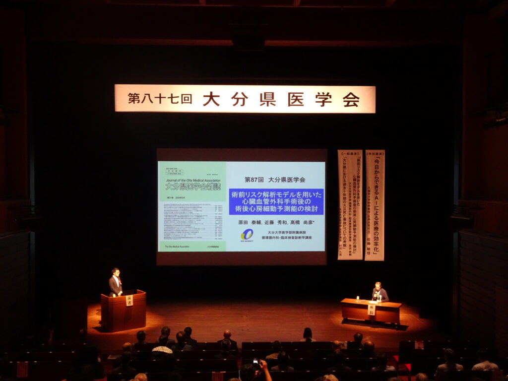 原田泰輔先生が、第87回大分県学会論文賞、優秀賞を受賞されました。 2025 11/18 受賞 2025年10月28日2025年11月18日 原田先生おめでとうございます! 受賞 よかったらシェアしてね! URLをコピーしました! URLをコピーしました! 梅北杏子先生が第135回日本循環器学会九州地方会女性研究者奨励賞優秀賞を受賞しました。 大庭悠貴先生が、第136回日本循環器学会九州地方会、研修医セッション最優秀賞を受賞されました。 関連記事 大庭悠貴先生が、第136回日本循環器学会九州地方会、研修医セッション最優秀賞を受賞されました。 梅北杏子先生が第135回日本循環器学会九州地方会女性研究者奨励賞優秀賞を受賞しました。 御手洗和毅先生が、第136回日本循環器学会九州地方会 研修医セッション メンター賞を受賞されました。 原田泰輔先生が、 第72回日本心臓病学会学術集会において、Young Investigator’s Award ファイナリストに選出されました。 安部一太郎先生が海外日本人研究者ネットワーク論文賞 (UJA論文賞)・奨励賞受賞 原田泰輔先生が、 第69回日本不整脈心電学会学術大会でベストアブストラクト最優秀演題賞を受賞しました。 御手洗和毅先生が、 第134回日本循環器学会九州地方会 でCRA 最優秀賞を受賞しました。 御手洗和毅先生が、 第134回日本循環器学会九州地方会 で医学科生セッションメンター賞を受賞しました。